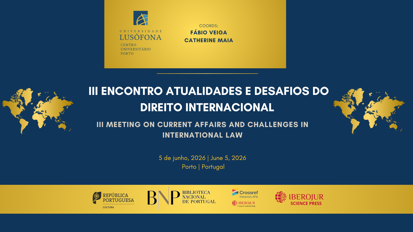 Sob a coordenação científica dos Professores Doutores Fábio Veiga e Catherine Maia – docentes de Direito Internacional (DIPr e DIP, respetivamente) da Universidade Lusófona, o Encontro propõe-se continuar a proporcionar um espaço privilegiado de debate académico interdisciplinar, promovendo o intercâmbio de conhecimento entre diferentes tradições jurídicas e realidades geopolíticas.
